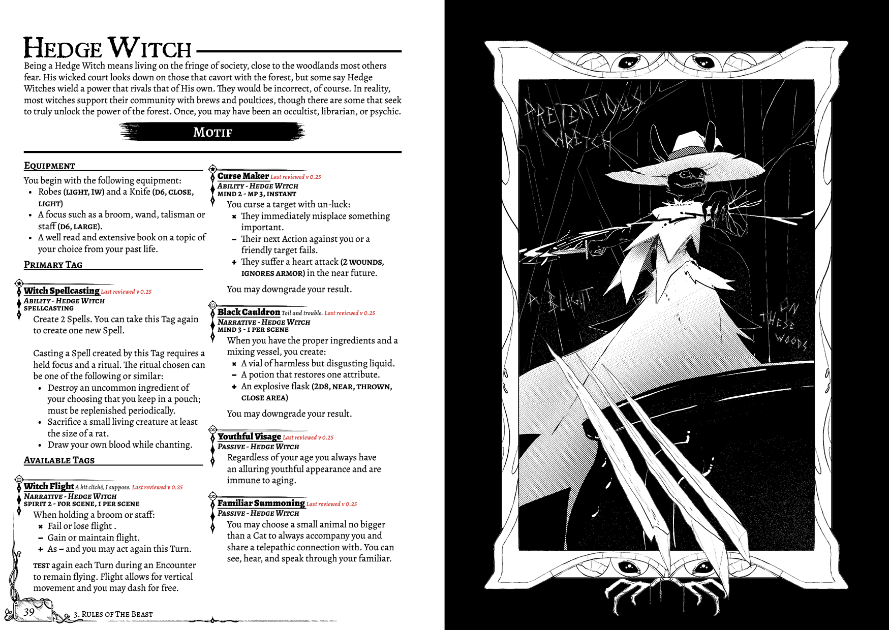 This game is in development and actively accepting feedback! This playtest document is completely free unless you want to support it's development. If you are interested in the full version please visit sabbothrpg.com and sign up to the newsletter for all future developments and updates. Signing up also provides a link to google drive for access to the latest changes and the feedback document.